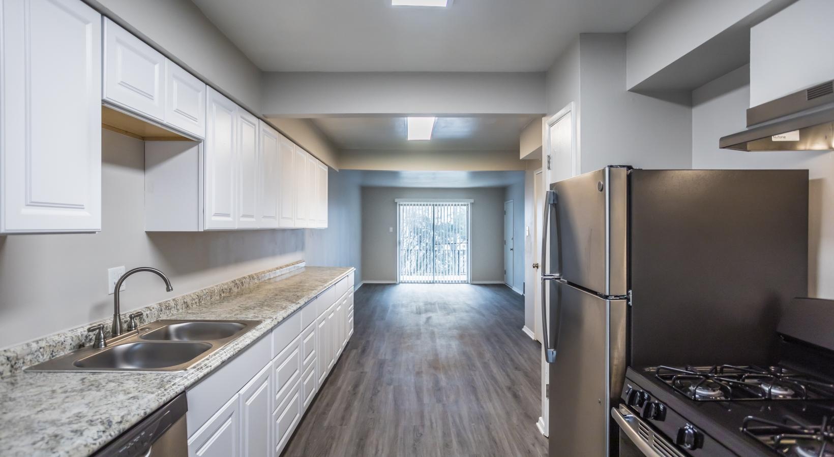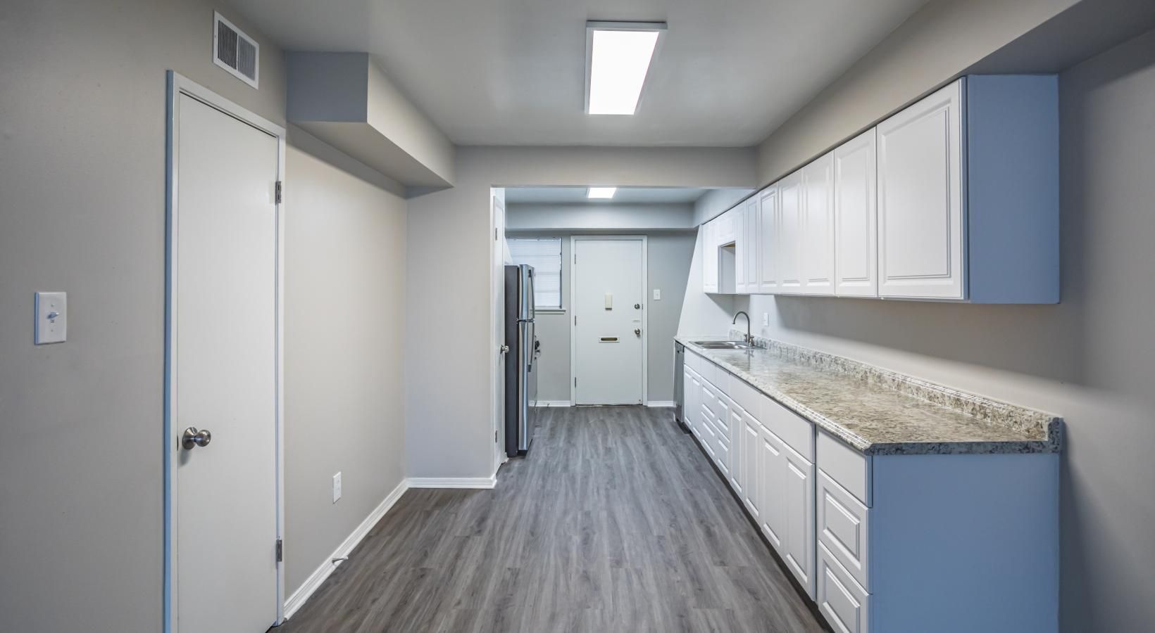 • a kitchen with white cabinets