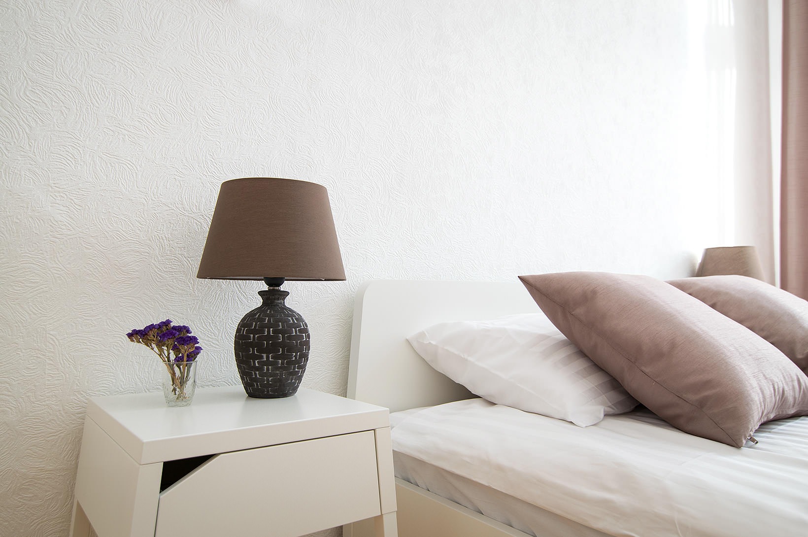 • bedroom with bed and side table