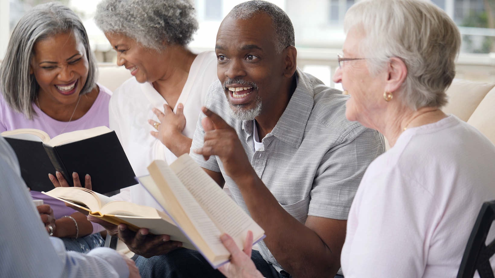 • people sit and talk with open books
