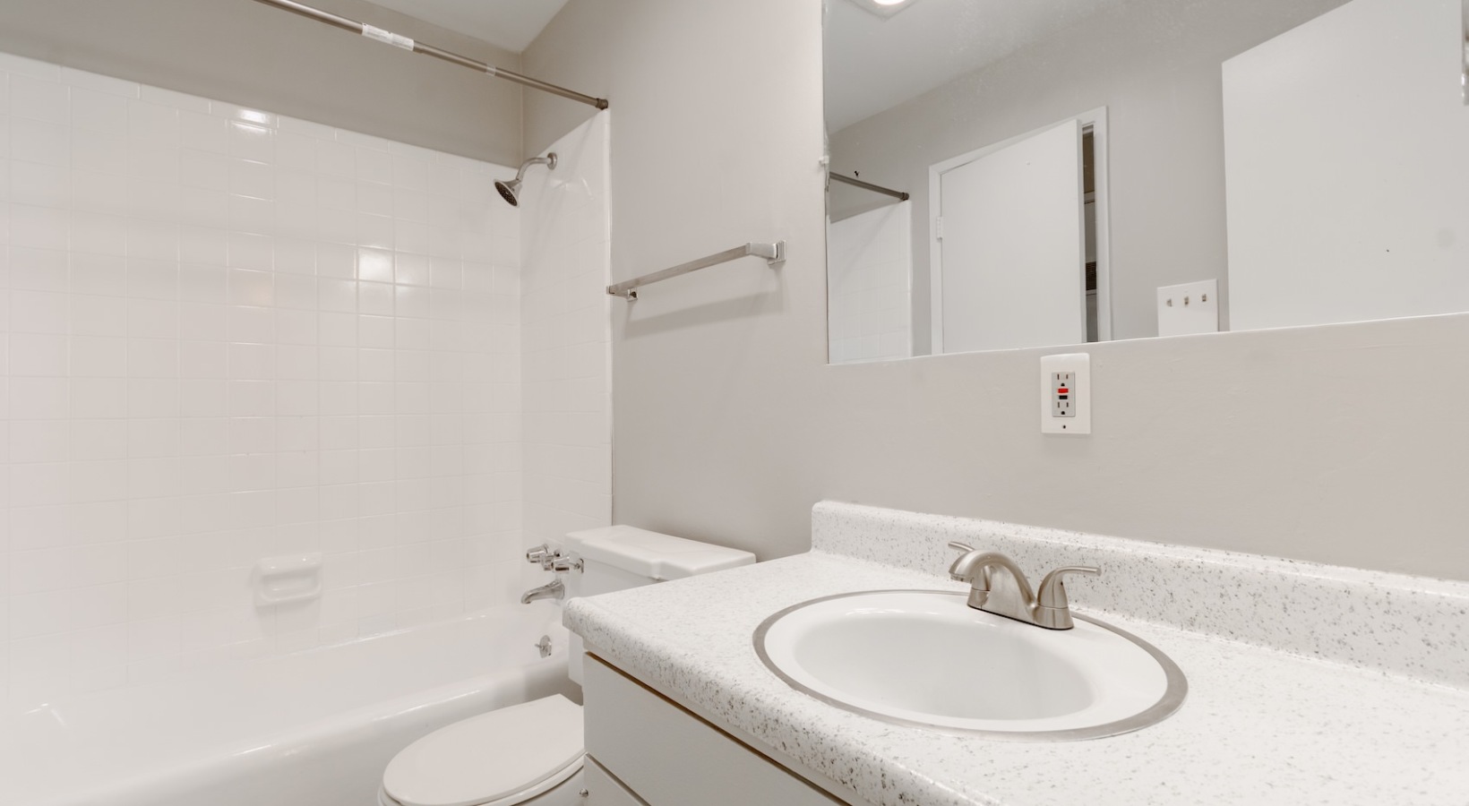 • a spacious bathroom wuth a large sink and vanity
